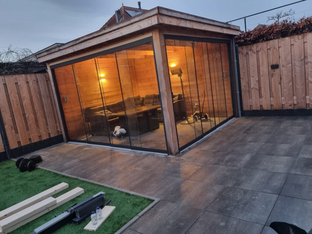 Ja! Onze glazen schuifwanden beschermen tegen wind en regen, terwijl je toch een open en ruimtelijk gevoel behoudt.